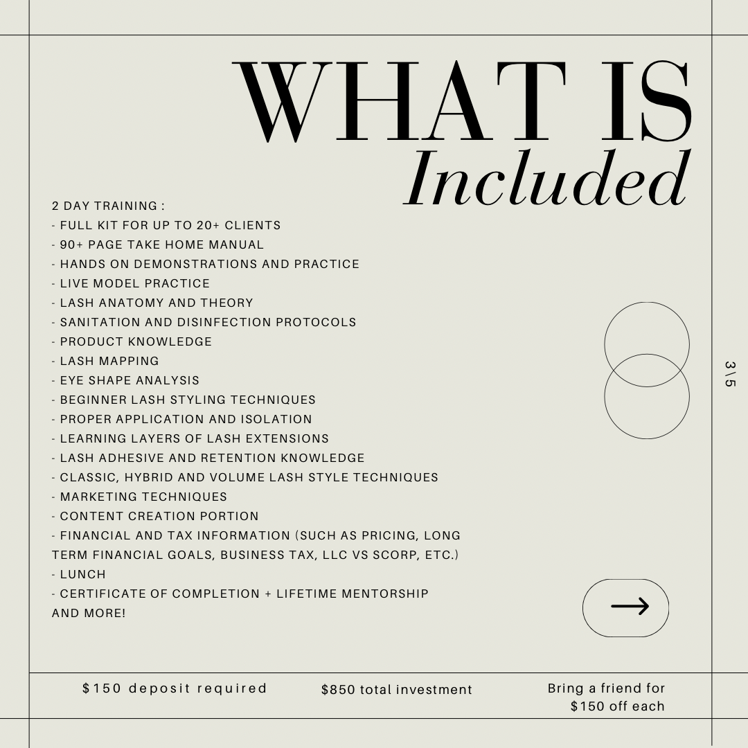 This two day 1:1 course will provided everything you need to help you build towards a successful lash career! Ms. SuSu is a licensed esthetician, has four years of experience within the lash industry, and a bachelors degree in electronic media and public relations. She cannot wait to share all of her knowledge she has learned over the years from topics such as customer service to how set up the business side of your upcoming, new lash career!