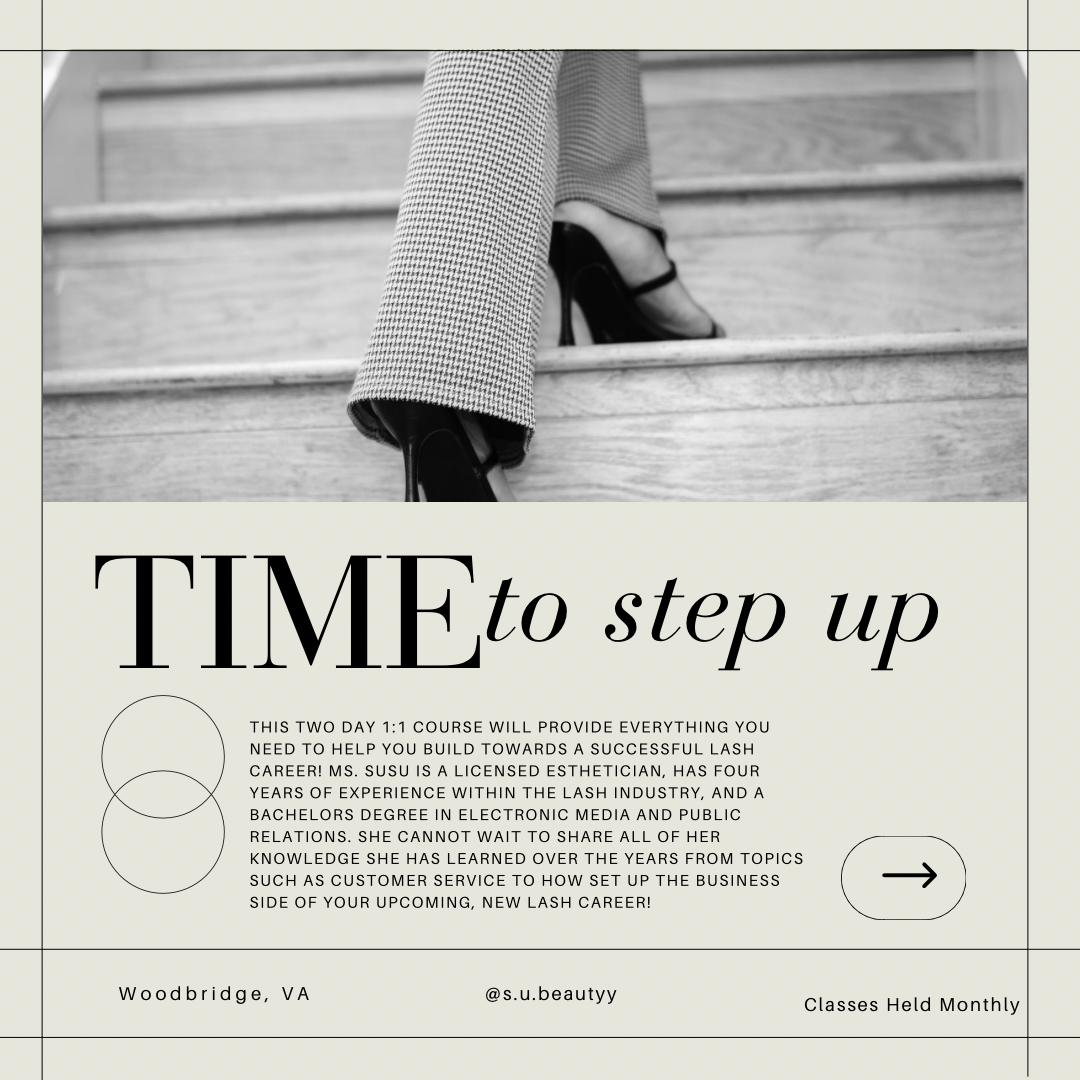 Please email stepuplashes@gmail.com for more information and to confirm a class date for the month you request!